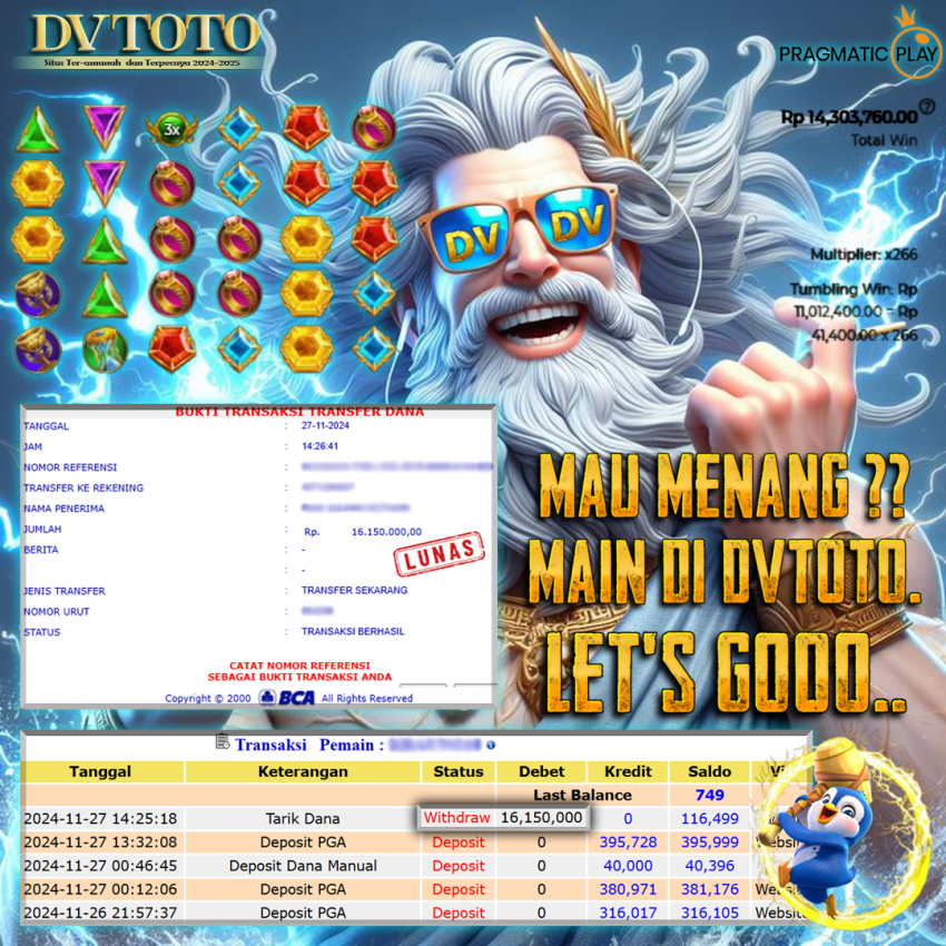 tidak perlu khawatir pada situs DVTOTO karena kemenangan anda berapapun akan dibayarakan hingga lunas kepada pemenang.